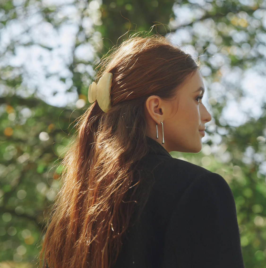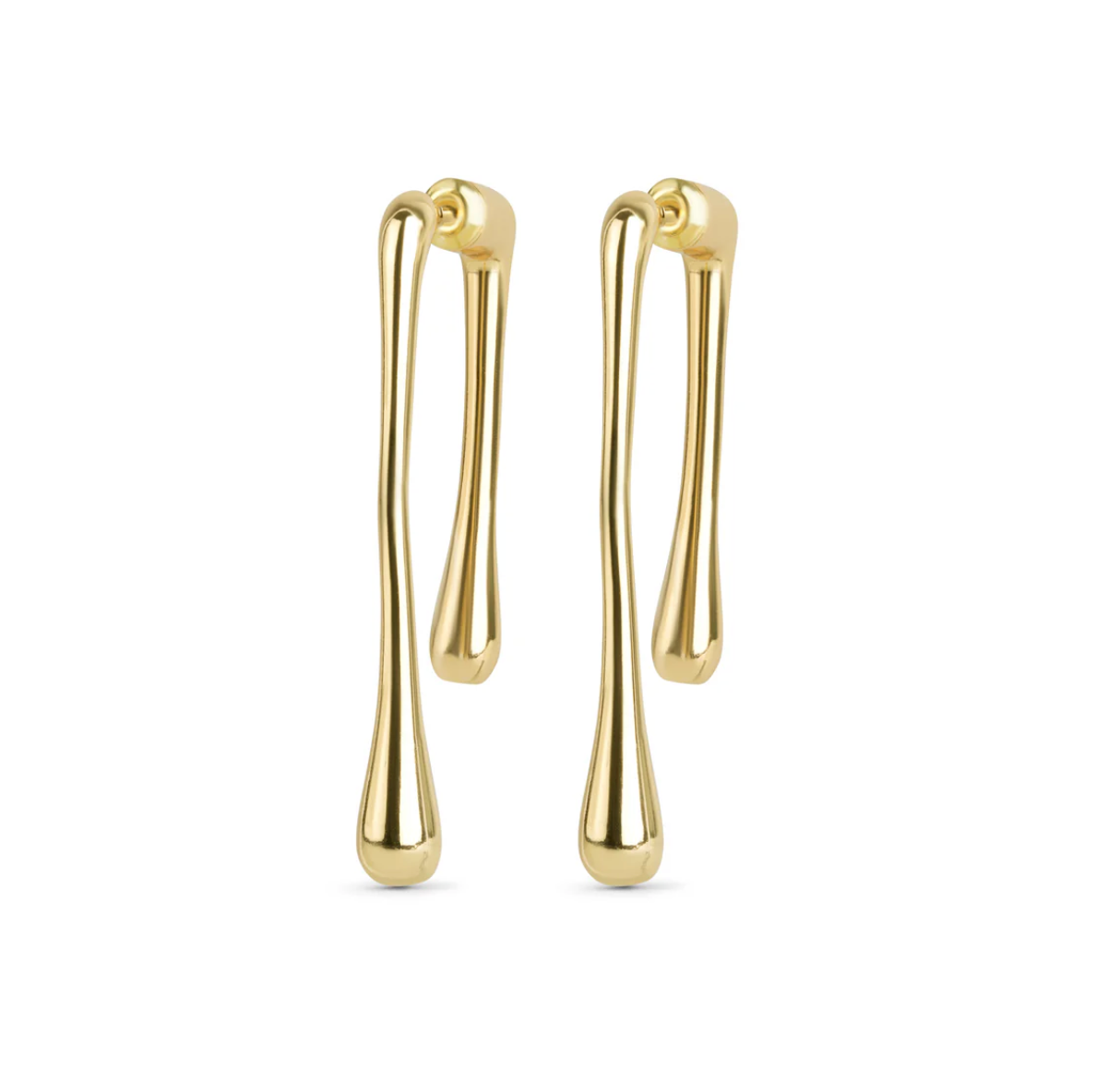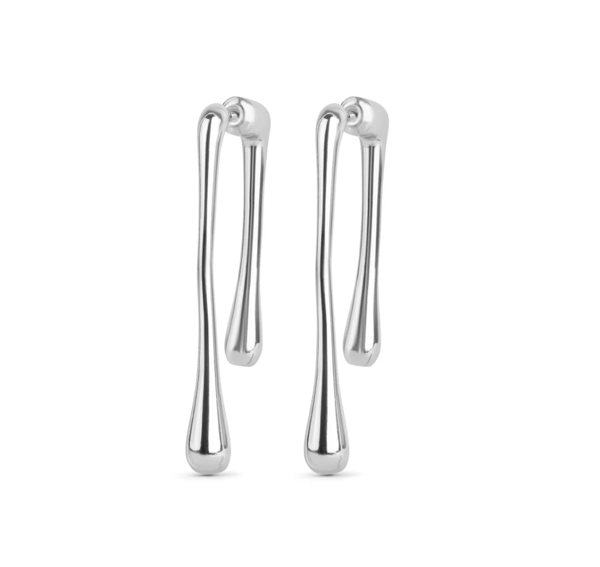 Architectural style with this drop bar earring design. Featuring a slender drop bar design with bars both in back and front, these stainless steel earrings are water-resistant and tarnish-free for a refined look. Available in silver & gold to fit your style and needs.