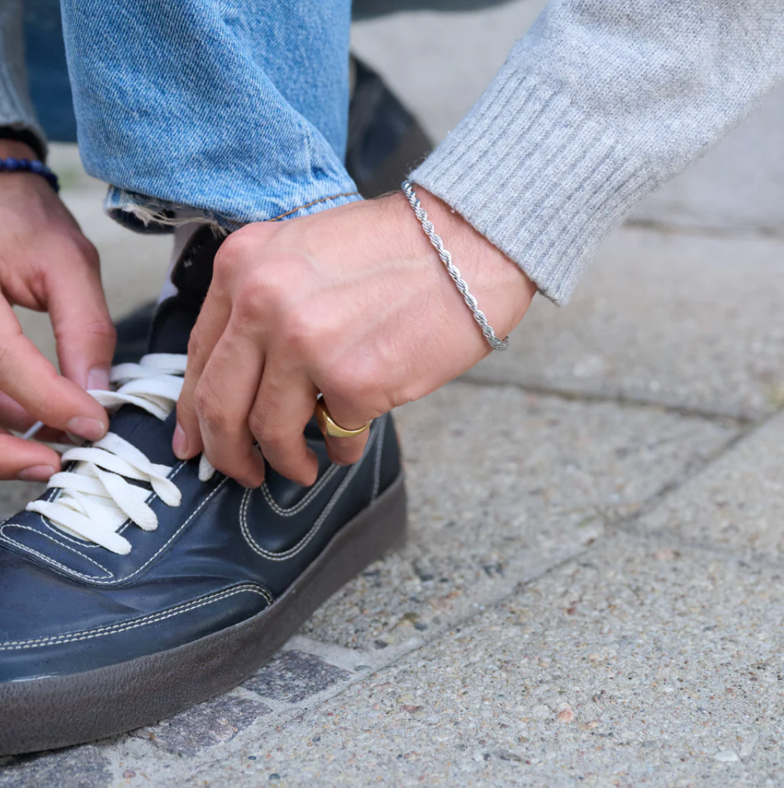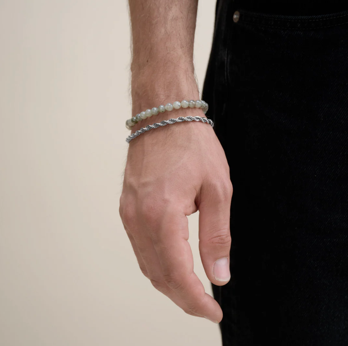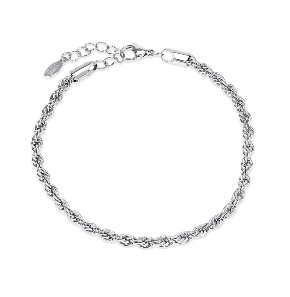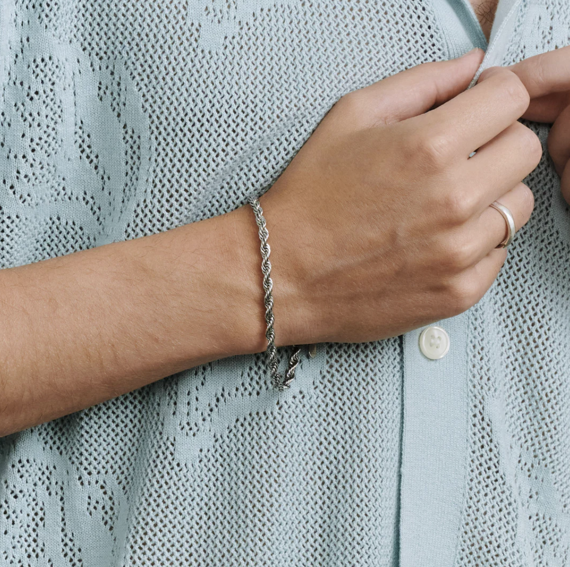Unique texture with this rope chain bracelet for men. This striking stainless steel bracelet features an intricate rope-like design, is water-resistant, and tarnish-free for distinctive style.