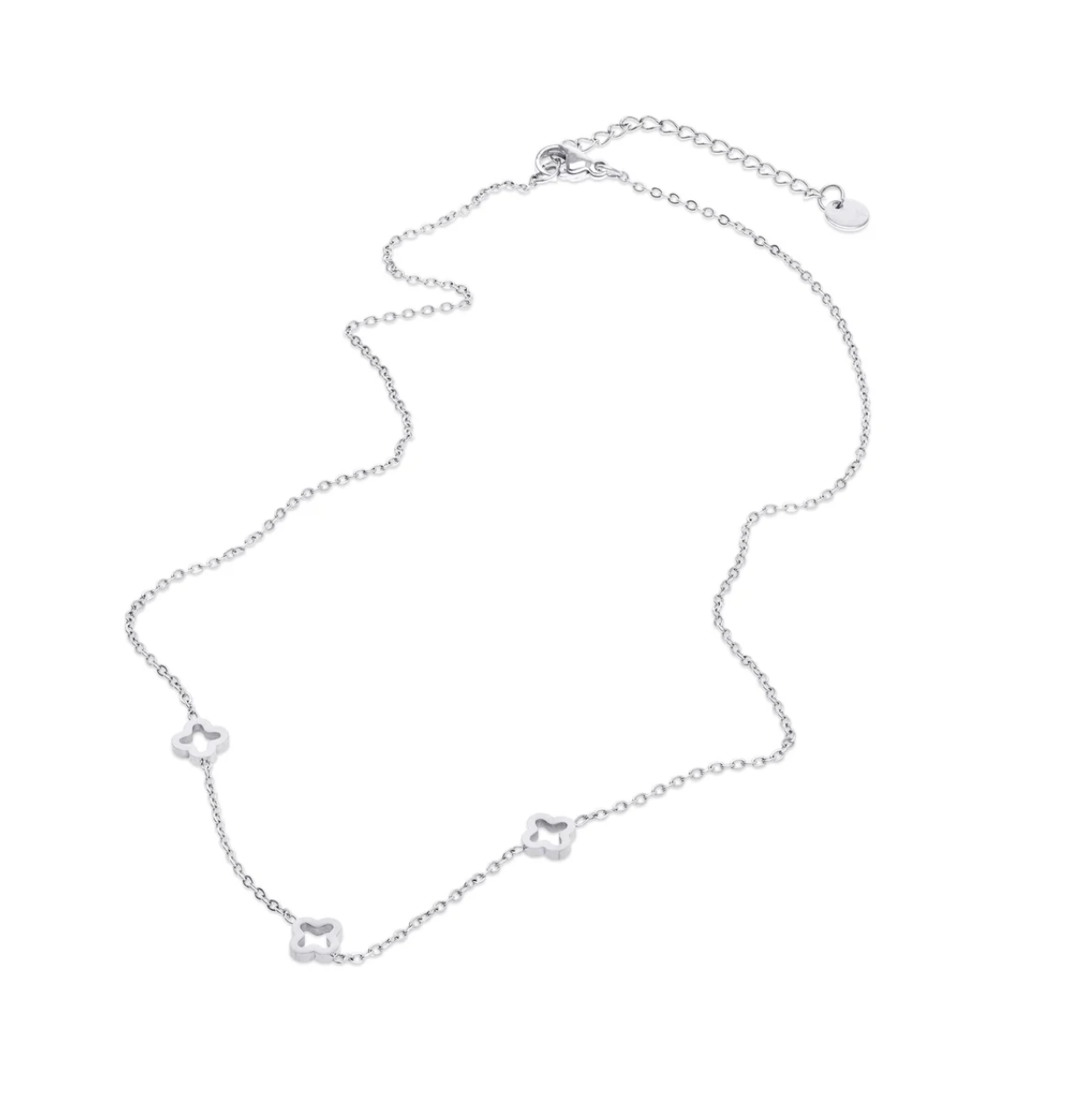 This delicate stainless steel necklace features a subtle clover pendant, is water-resistant and tarnish-free for everyday wear. Available in silver and gold to suit your style and needs.
