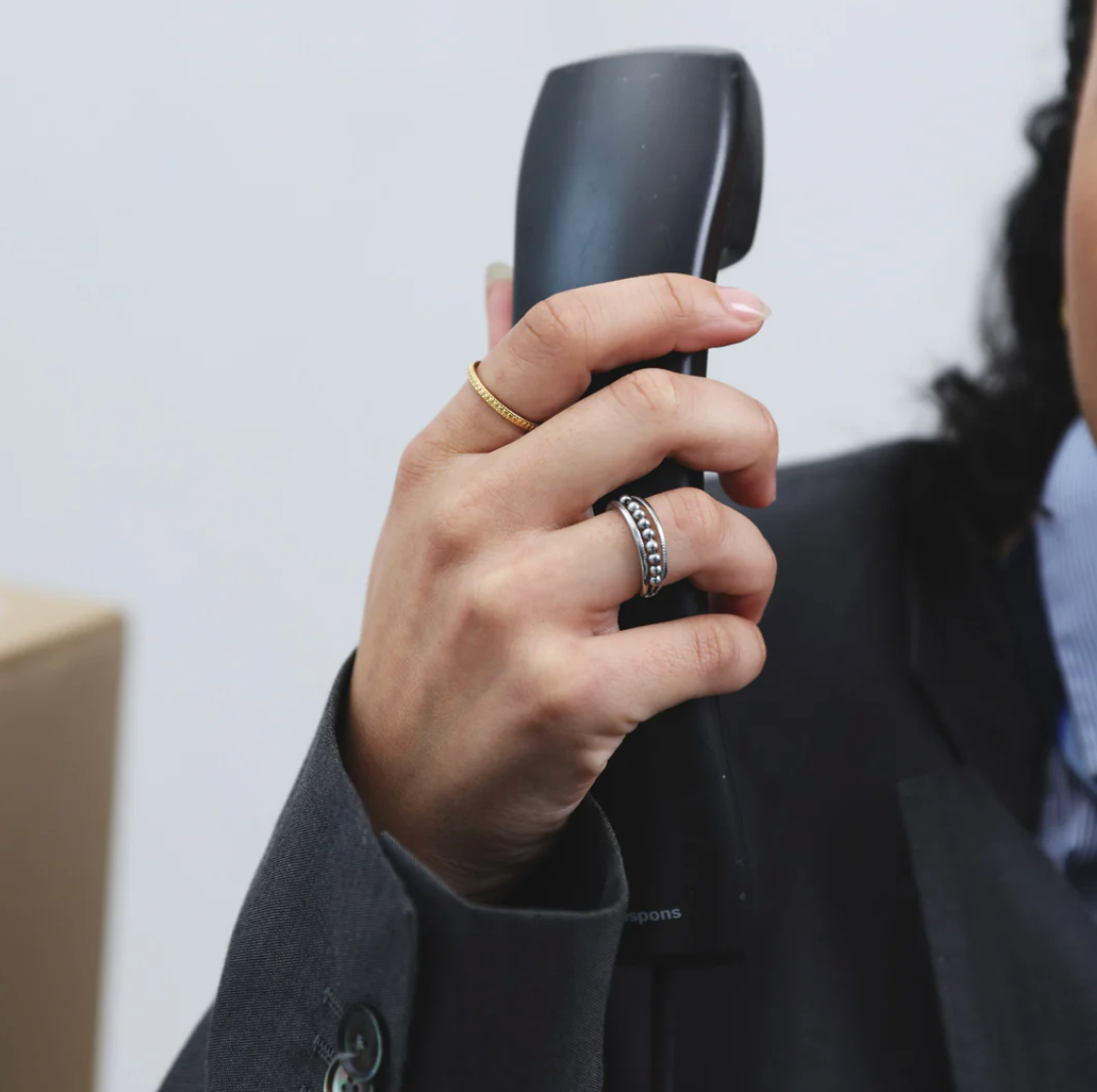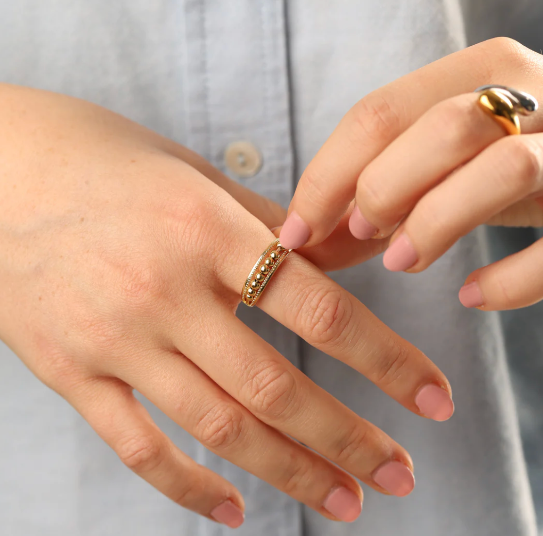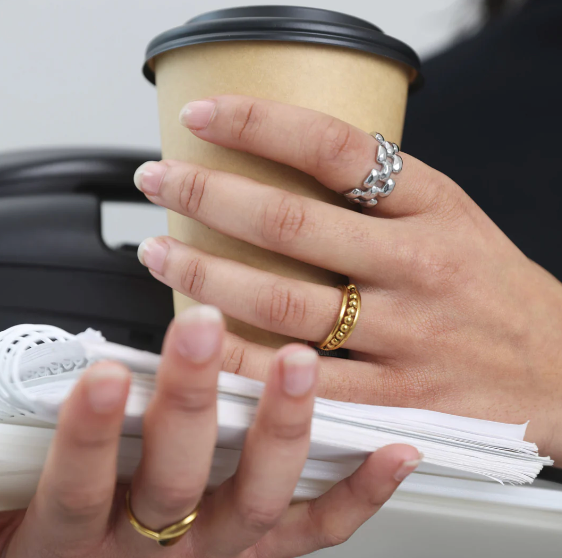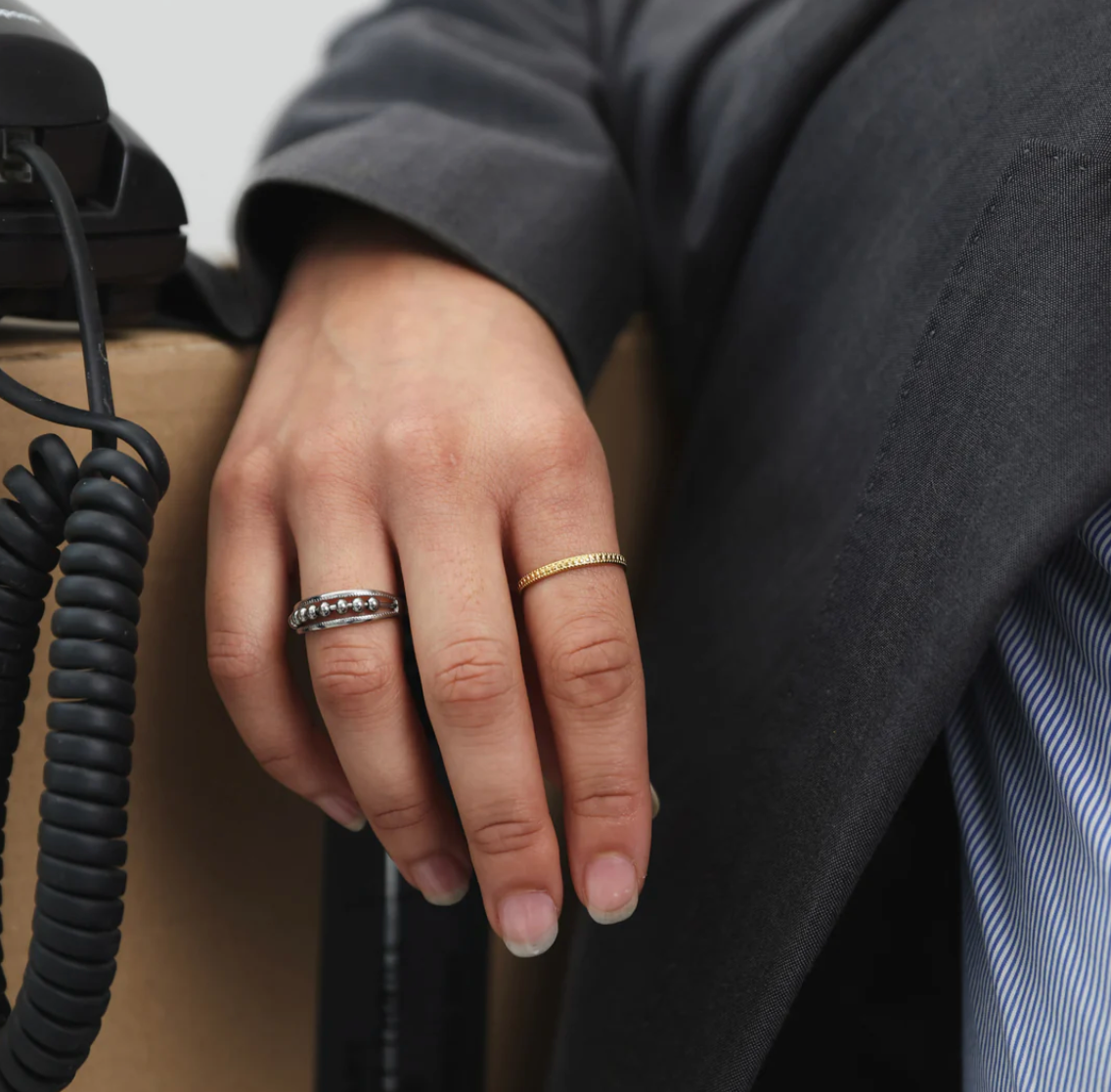 A sculptural ring in waterproof stainless steel with a bold, textured design.