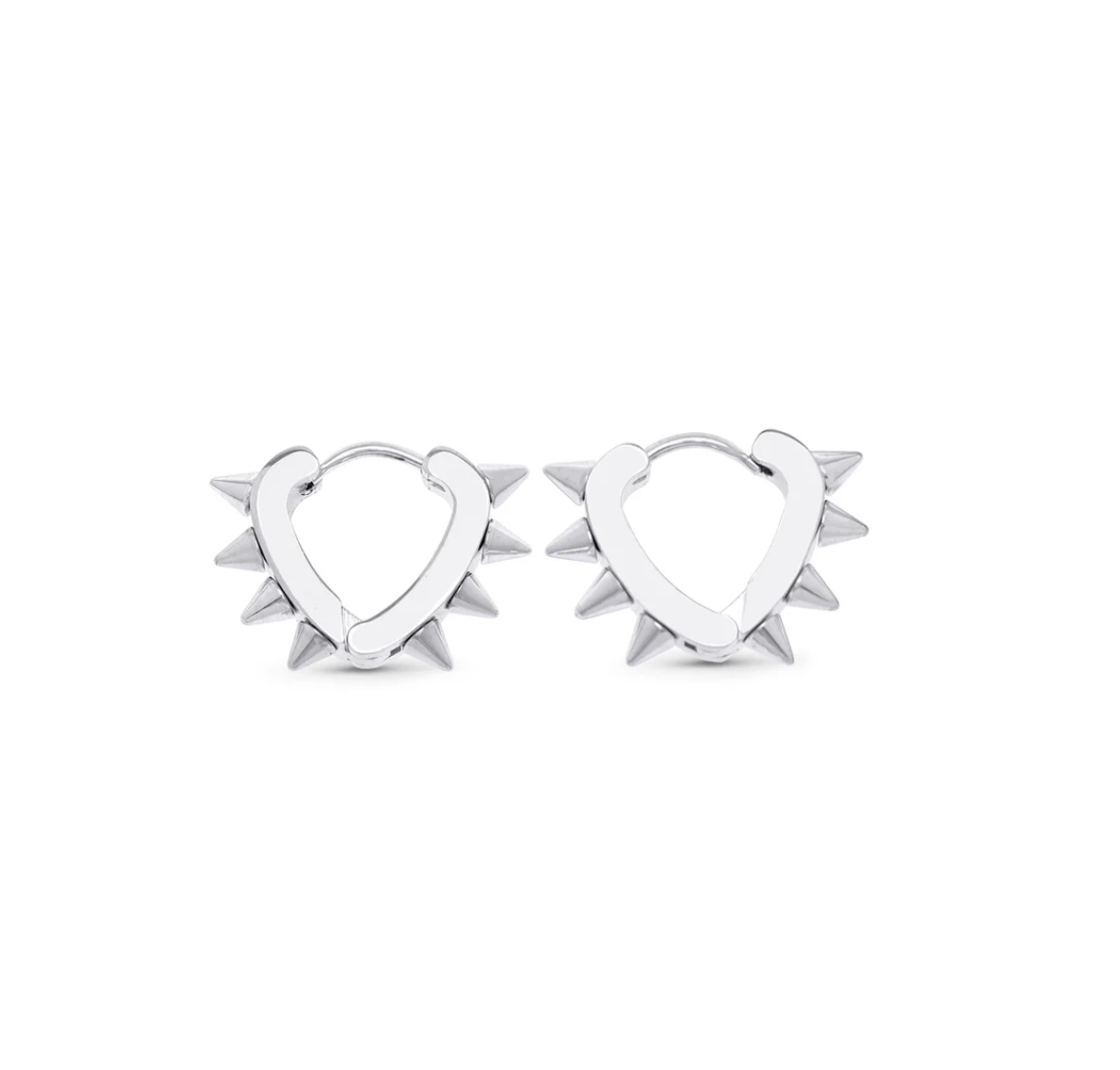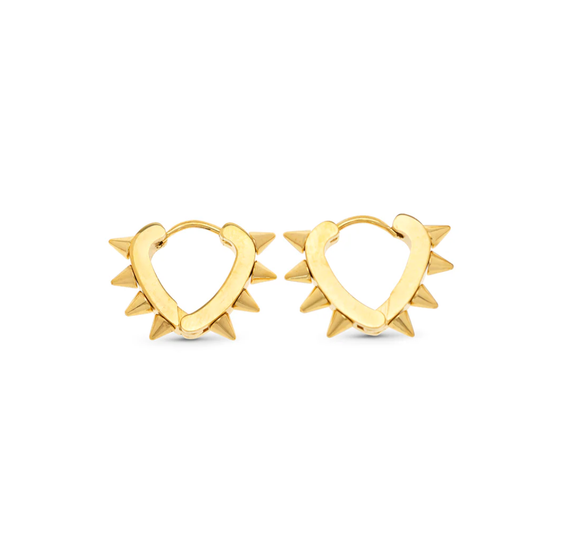 These spike hoop earrings are just the right amount of daring with a slight heart shape and spike detailing. Crafted from water-resistant, tarnish-free stainless steel, these hoops make a lasting statement. Available in silver & gold to suit your style and needs.