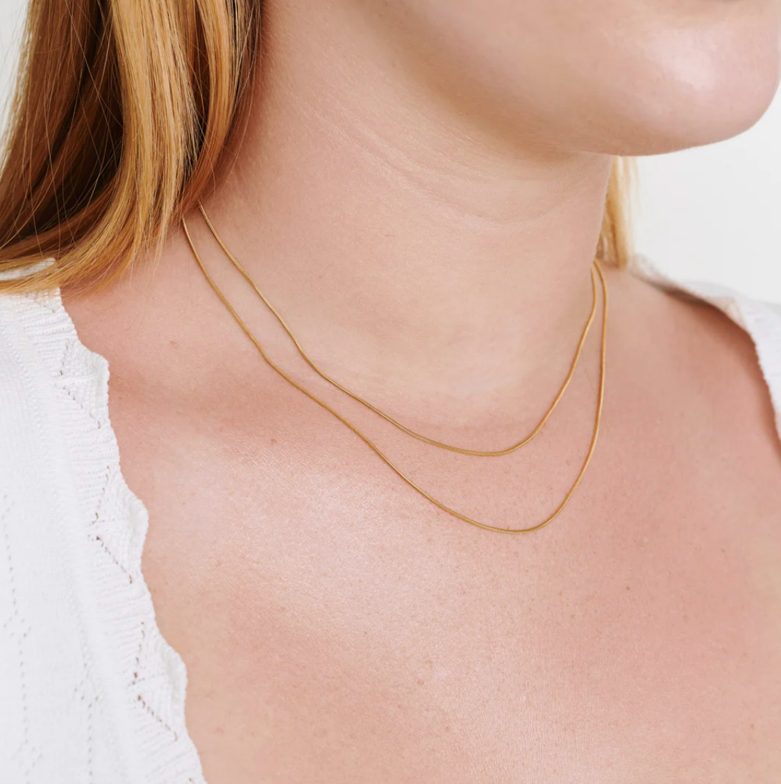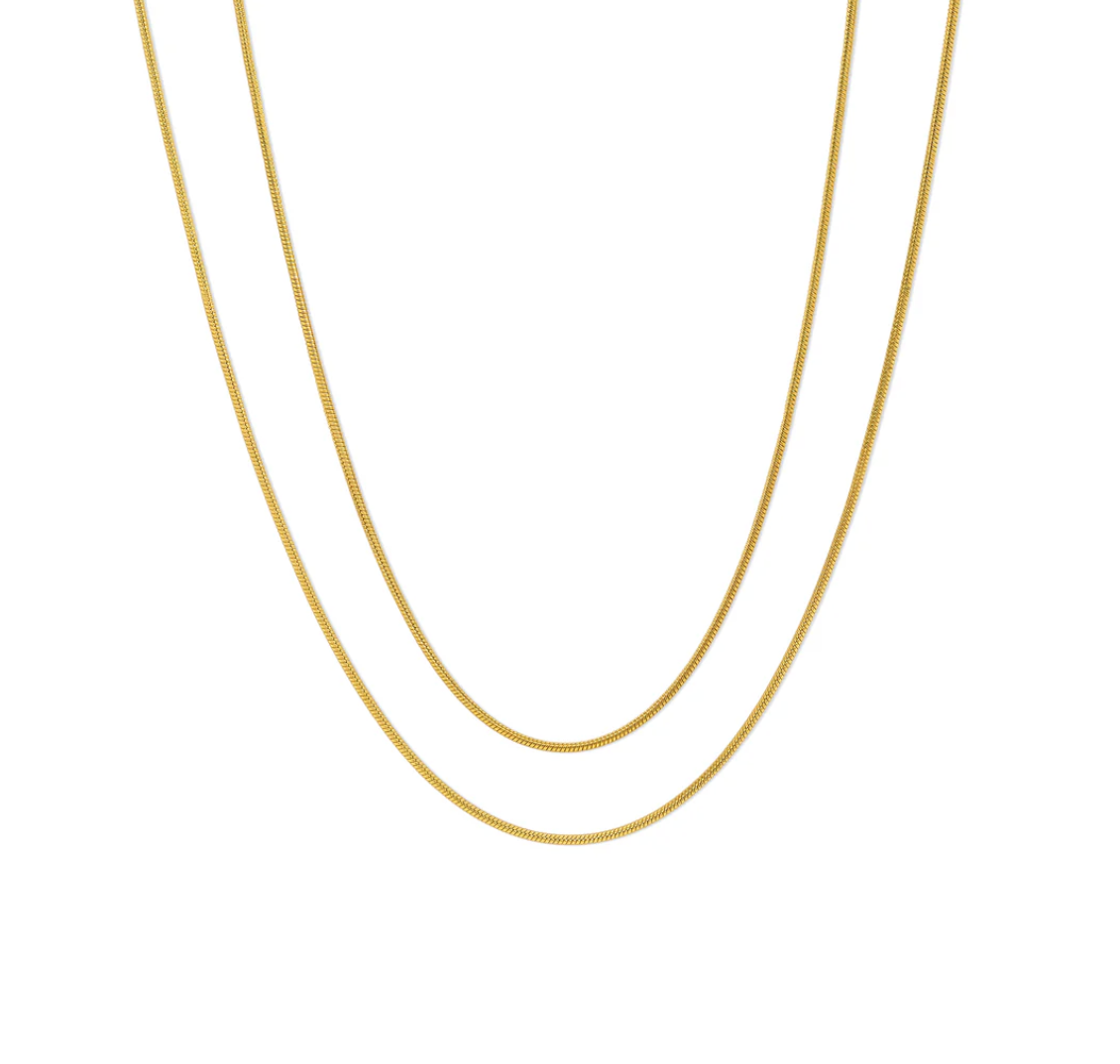 Love layering without the hassle? This stainless steel necklace features two snake chains for a unique texture. It's water-resistant and won't tarnish! Available in silver and gold.