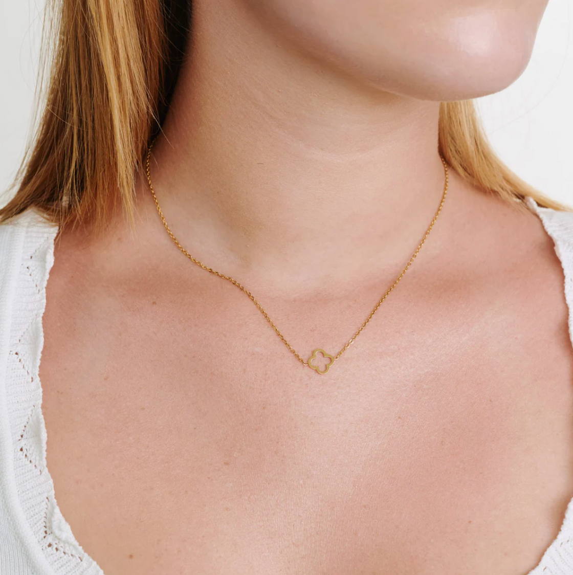 A symbol of luck and charm, this clover necklace. This delicate stainless steel necklace features a subtle clover pendant, is water-resistant, and tarnish-free for everyday wear. Available in silver & gold to fit your style and needs.