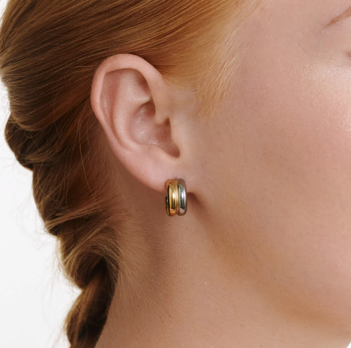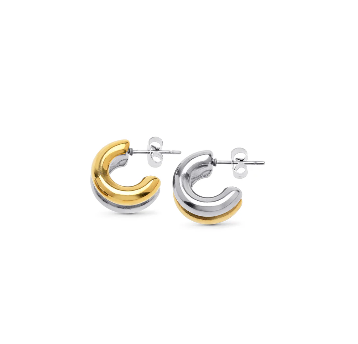 Minimalist chic with this duo stud earrings. Featuring a double-stud design in silver & gold, these stainless steel earrings are water-resistant and tarnish-free for versatile wear.